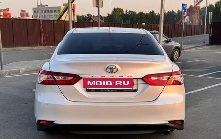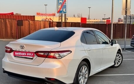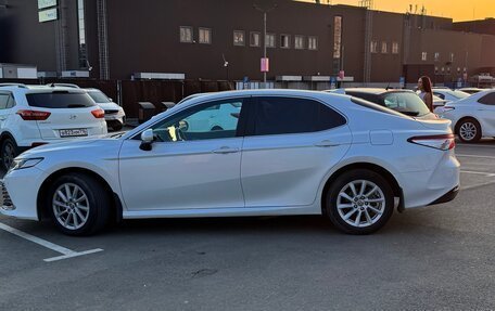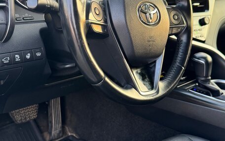 Toyota Camry белого цвета, год выпуска - 2019. Пробег - 103 000 километров. В ПТС два владельца. Объем двигателя - 2.5 л, мощность - 181 лошадиная сила. Тип двигателя - бензиновый. Коробка передач автоматическая, передний привод. Оп...